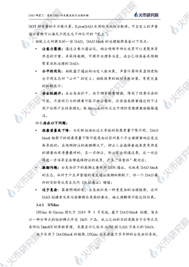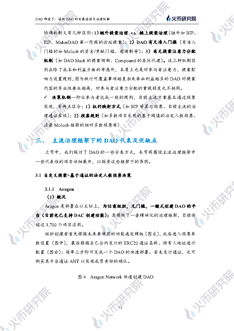 火币研究院:该报告分析了不同治理框架下DAO代表及其优劣势。