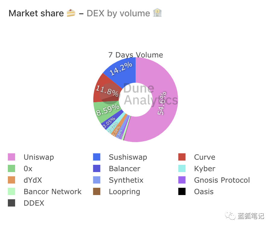 (Sushiswap最近7天的市场份额排名第二,dunenalytics)