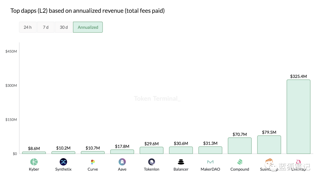 (Sushiswap的年化捕获费用位居第二,tokenterminal)DeFi领域还远未到定局之时