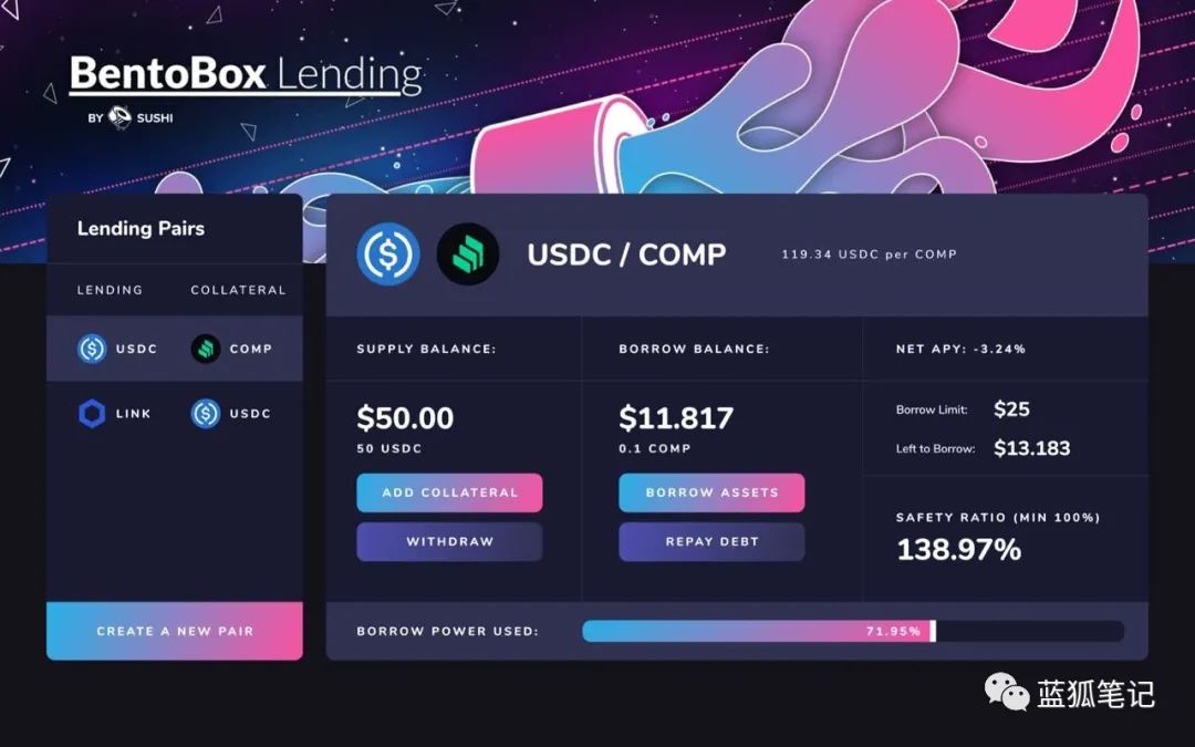 BentoBOX试图通过构建独立的借贷代币对(每个借贷代币对都有不同的风险系数),它让借贷变得更加灵活,从而解决Compound和Aave市场走向更大规模的一些限制。
