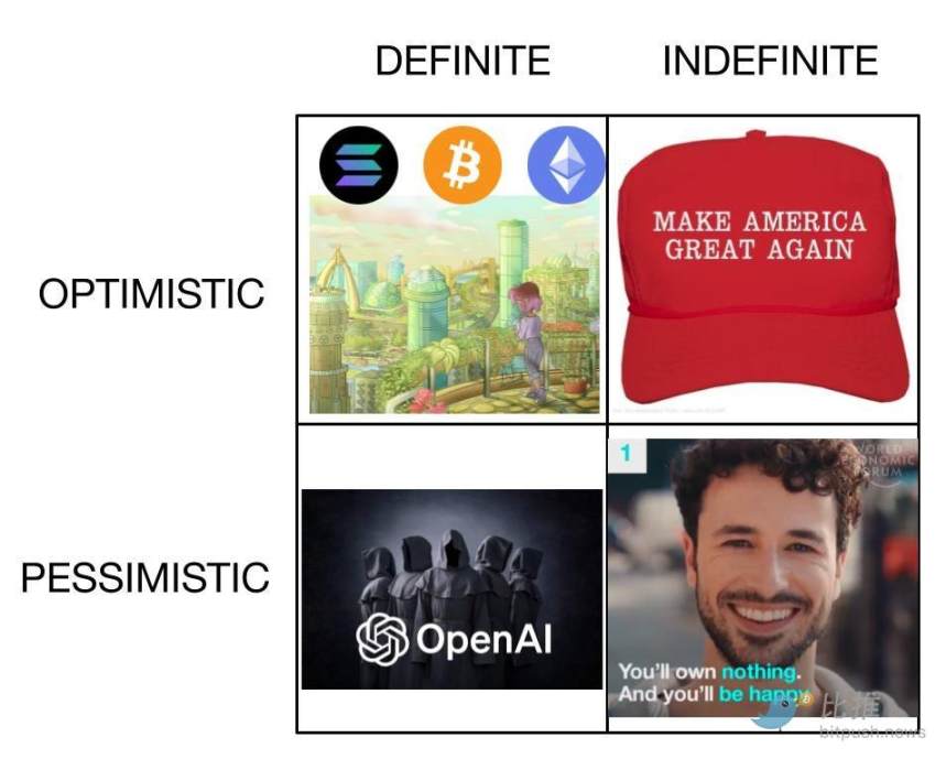 不明确的乐观主义者则憧憬着一个更美好的未来,但他们却不知如何实现。最终,明确的乐观主义者不仅看到了一个更好的未来,还为此制定计划并努力将其实现。这便是我为推特上主导的叙事所制定的简化版本:
