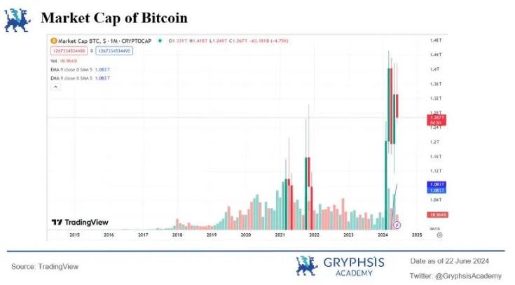 随着 BTC ETF 的通过、BTC 减半以及 ETH ETF 的落地预期,越来越多的国家将加密货币支付纳入监管范畴,更多的个人和机构资金正在涌入加密市。截至 6.23 日,BTC 市场规模已经达到 $1.27 T ,而以太坊达到了 $15.2 B。