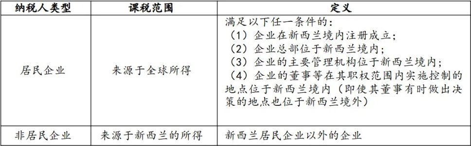 居民纳税人必须就来源于全球的收入在新西兰申报纳税,企业所得税税率是 28%。非居民企业(包括分公司)仅就其来源于新西兰的所得纳税。对于股息征收的非居民预提所得税,视持有股份的比例、是否是现金股息等因素的不同,可能适用 0%、15% 或 30% 的税率。