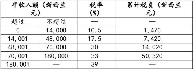 新西兰的个人所得税实行综合所得税制,居民纳税人就来源于全球的所得缴纳个人所得税;非居民纳税人就来源于新西兰的所得或者视同来源于新西兰的所得缴纳。实行累进税率。