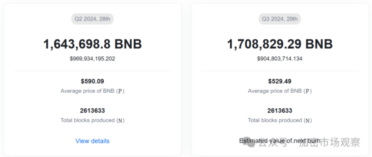 例如本月 BNB 基金会就发布公告称,已完成第 28 次 BNB 季度销毁,本次共销毁约 164.3 万枚 BNB,价值约 9.7 亿美元。