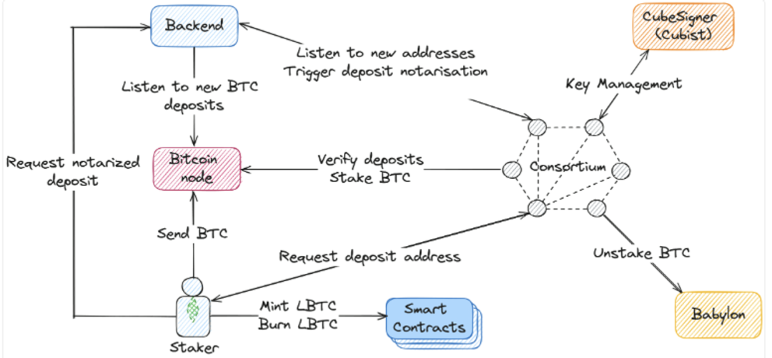- 核心产品 LBTC 是一种具有收益的跨链流动性比特币代币,以 1:1 的比例由 BTC 支持。当用户通过 Babylon 质押比特币时,Lombard 使用 LBTC 代币来表示质押比特币的流动性和收益。