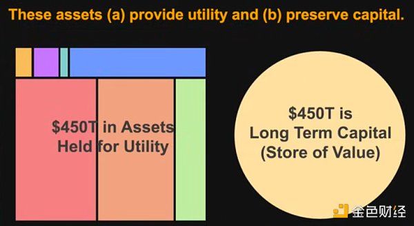 这是另一种看待同一张图表的方式。这不是900万亿美元的资产,而是一堆用作实用价值的资产和一堆作为价值存储的长期资本资产。