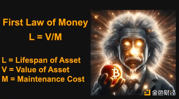 如果你在寻找维护金融资产的方式,那么计算它的使用寿命的方法是问每年要花多少钱才能保持资产的完好状态。为了避免资产贬值或衰退,我需要花多少钱?这个使用寿命非常接近我们在比特币社区中知道的存量/流量比(stock-to-flow),它们在年份的测量上非常相似。