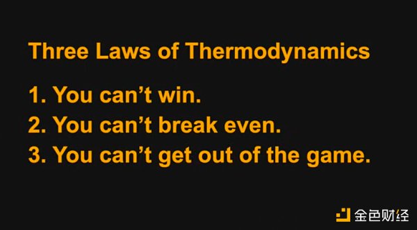 我在麻省理工学院学到的三条热力学定律是:你无法赢它,你无法打破它,你无法退出它。