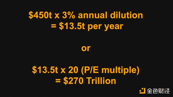 如果你把它像公司或长期债券一样估值,给它一个20倍的市盈率,它的价值为270万亿美元。