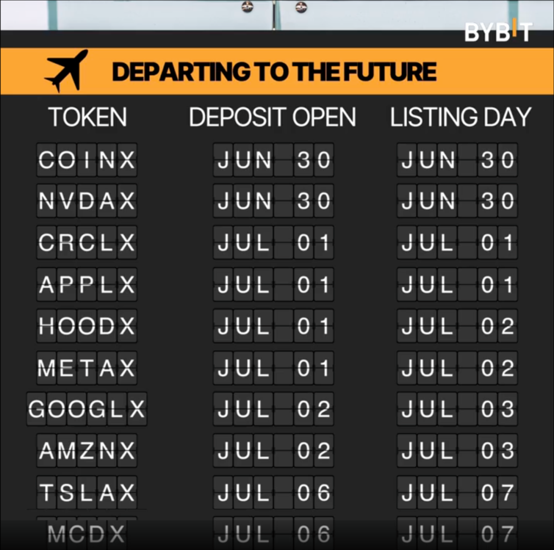 同日,Bybit 也宣布与 Backed 达成战略合作,在其现货平台陆续上线 xStocks 代币化美股和 ETF 产品,并支持 24/7 全天候交易,更加符合 Web3 用户的交易习惯。首次上线包括 10 种最热门的美国股票。