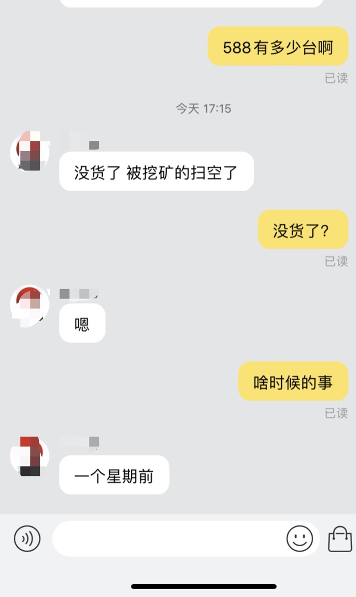 深潮TechFlow询问了淘宝上卖a卡588销量排名前五的卖家,除了一家开出2699元报价(约市场价的2倍)的店家之外,其余均表示卖完了,“全网都少货”。