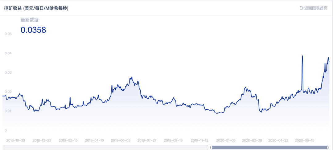 以太坊矿工的挖矿收益,除了6月10日附近的两次天价手续费故障之外,最近的挖矿收益又达到高点
