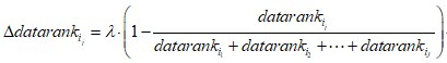 以上调整公式背后的直觉非常简单:一是与datarank值高的数据单元一起被调用,更有助于提高自身的datarank值,也就是“近朱者赤”;二是在其他条件一样的情况下,被调用次数越多,datarank值上调越多,也就是“多劳多得”。