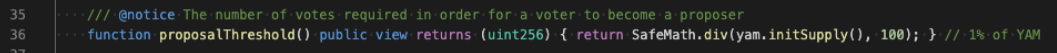 图10. GovernorAlpha::proposalThreshold() 返回1% initSupply