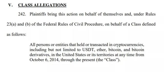 假设Bitfinex官司输了,就到最后赔偿程序,币民就可以根据起诉书里规定的集体诉讼范围,去原告律所注册,作为集体诉讼的受害者之一,能分回一些补偿。