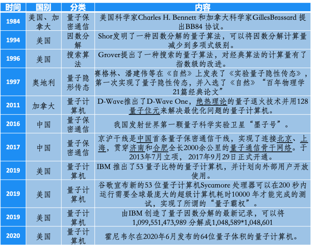 2.3 第二次“量子科技革命”的实质性进展。下图是崔巍教授帮助整理的,罗列了自1984年“量子通信BB84协议”提出至今量子科技取得的主要进展。