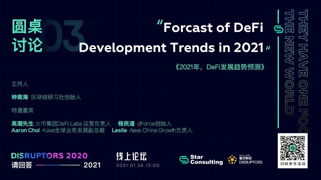 为了解答这些问题,本次「Disruptors 2020:请回答2021」线上论坛的《2021年,DeFi发展展望》邀请到了在国际和国内均有不错口碑的DeFi相关平台,他们包括: