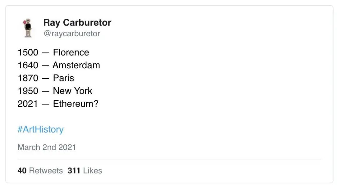 而现在,这些新创造的财富正在从数字金融领域转向数字艺术领域,这在人类历史中早已有过先例。