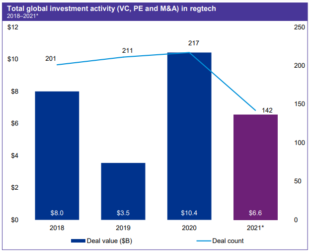 监管科技(Regtech)领域投资在2021年创下历年新高