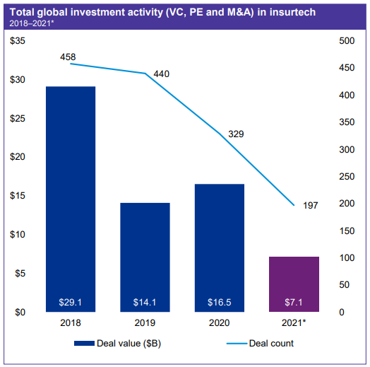 图注:2018至2021年上半年全球保险科技领域投资金额总览