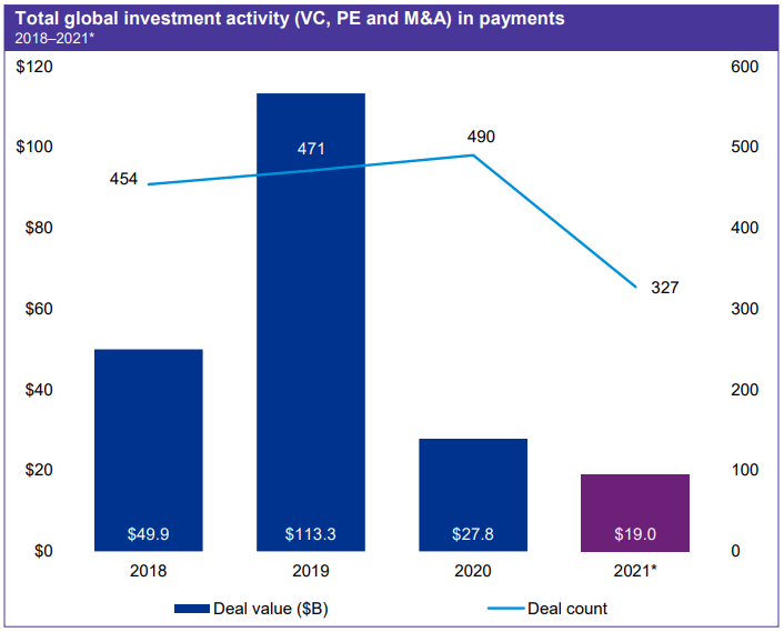 图注:2018至2021年上半年全球支付领域投资金额总览