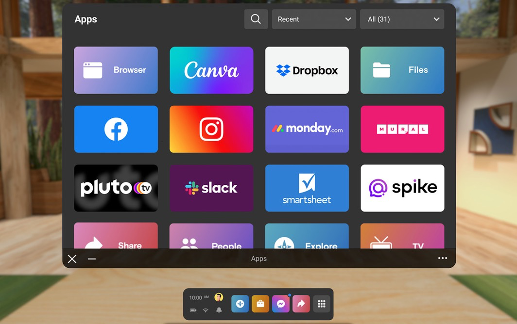但Meta此次又推着元宇宙办公概念再往前走了一步。为了让你在VR世界里的工作更加便捷、高效,扎克伯格今天宣布将在 Horizon Workrooms中集成更多可用于多任务处理的2D应用程序,包括 Slack 、Dropbox、Mural、Pluto TV等。而未来,一些 Oculus 应用也将模糊 VR 和 2D 应用之间的界限,例如,Horizon Workrooms将在不久后支持 Zoom 的通话。