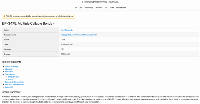 为了解决当前市场痛点,DeBond 团队提出了专门针对债券生态的 ERC-3475 标准,并被合并到了 ETH master。