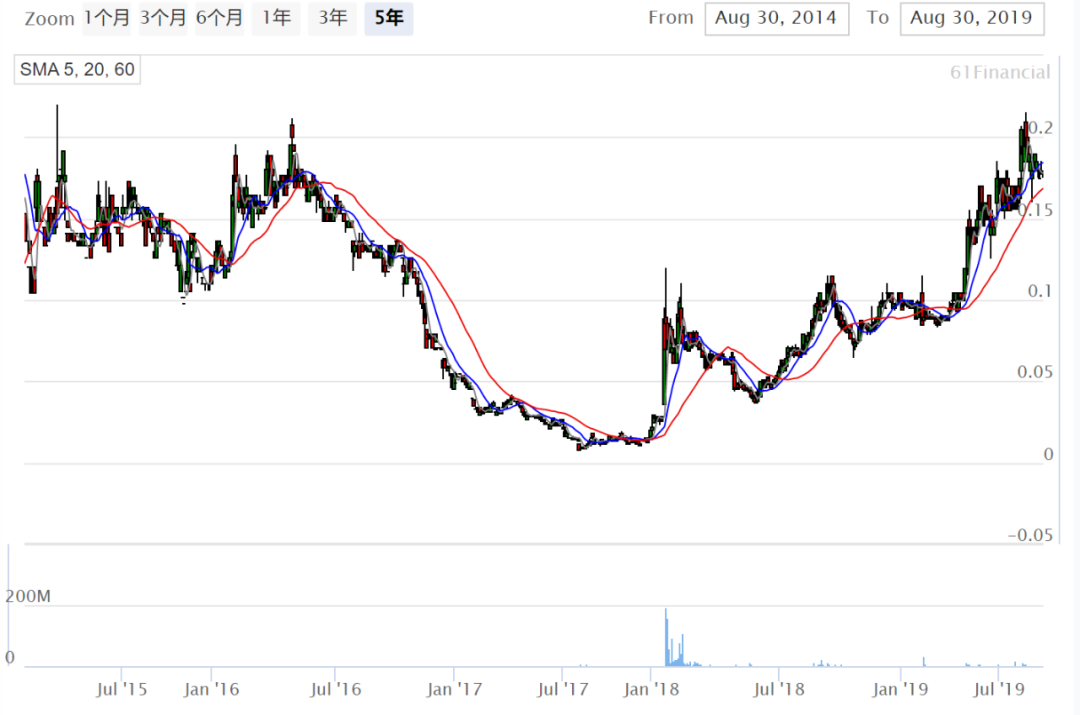 截止2017年第四季度,其季度经营现金流一直为负数。数据显示,该公司在17年8月股价从此前的高点0.2澳元一度跌至0.01澳元以下,跌幅超95%。
