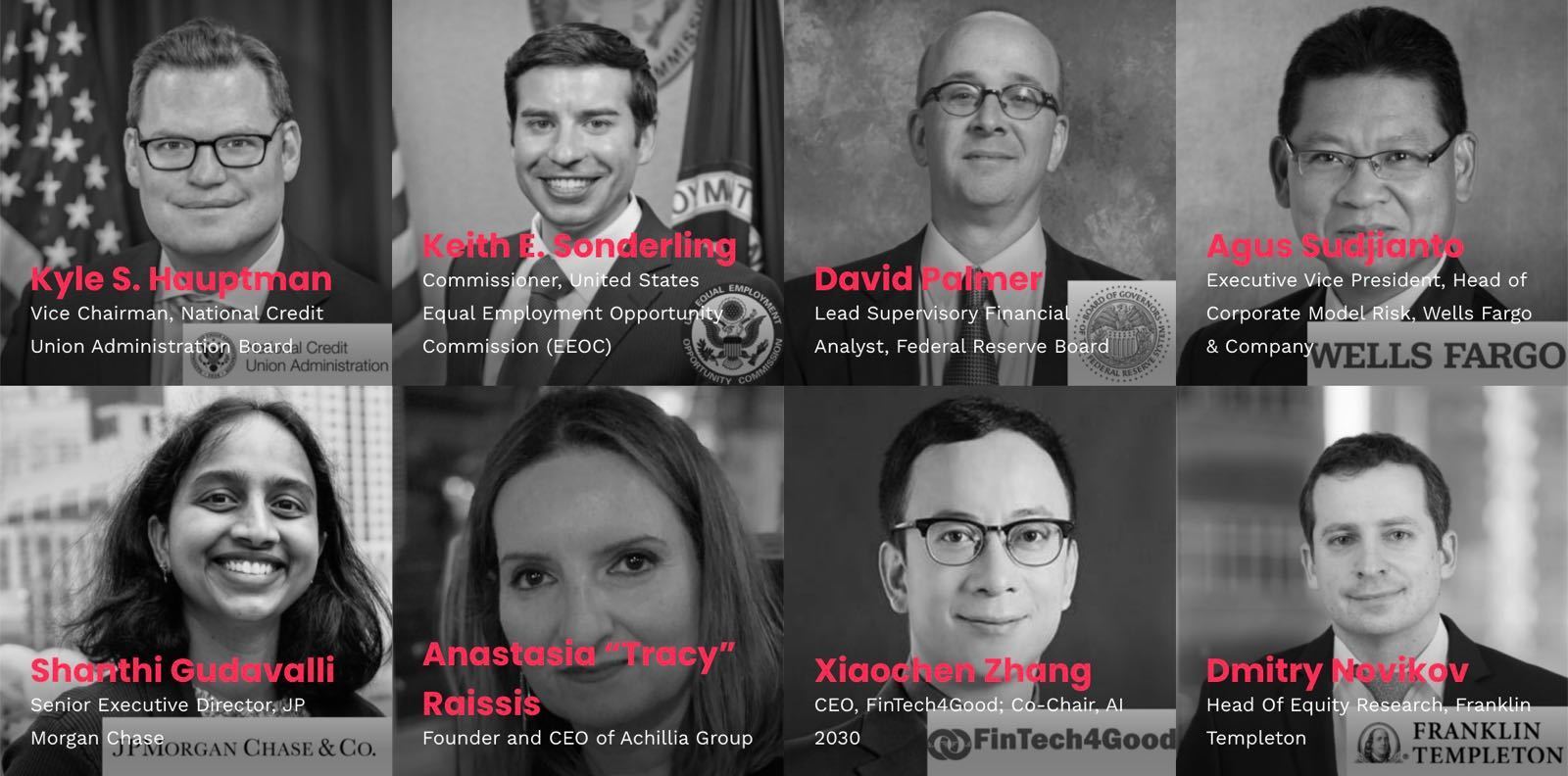 届时,美国平等就业机会委员会(EEOC)主席Keith E. Sonderling,国家信用合作社管理局副主席Kyle S. Hauptman,联邦储备委员会首席金融监管分析师David Palmer,国际清算银行 (BIS) 多伦多中心主任 Miguel Diaz,富国银行(Wells Fargo)执行副总裁、企业模式风险主管Agus Sudjianto,摩根大通 (JP Morgan Chase)高级执行总裁Shanthi Gudavalli,前纽约梅隆银行市场监管和前台风险技术主管Arthur Rabatin,微软金融机构首席技术官 Ravi Sarkar,亚马逊云服务负责人、人工智能部门主管 Diya Wynn,五三银行(Fifth Third Bank)数据分析部总监Seyhun Hepdogan,发现金融服务公司(Discover Financial Services)数据分析部总监Arjun Ravi Kannan,前亚马逊云公共部门总监、现Achillia Group首席执行官Anastasia,”Tracy” Raissis、社会银行(BankSocial)首席执行官John Wingate,社会银行(BankSocial)首席运营官Becky Reed,SolasAI首席技术官Nicholas Schmidt,芝加哥大学Marianne Winslett教授,美国西北大学教授、首席人工智能官Yuan Luo,伊利诺伊大学厄巴纳-香槟分校副教授Aravinda Garimella,前美国货币总稽核办公室(OCC)董事总经理、现Sunflower Labs.AI首席技术官Sandeep Maira,以及FinTech4Good首席执行官、人工智能2030计划发起人张晓晨等来自政府机构、金融界、学界和AI创新前沿的专家将齐聚一堂,进行深入交流,分享独到见解和专业经验,共同推动利用负责任的人工智能,为更多个人和企业提供收费更低、服务更优、更个性化的金融服务。