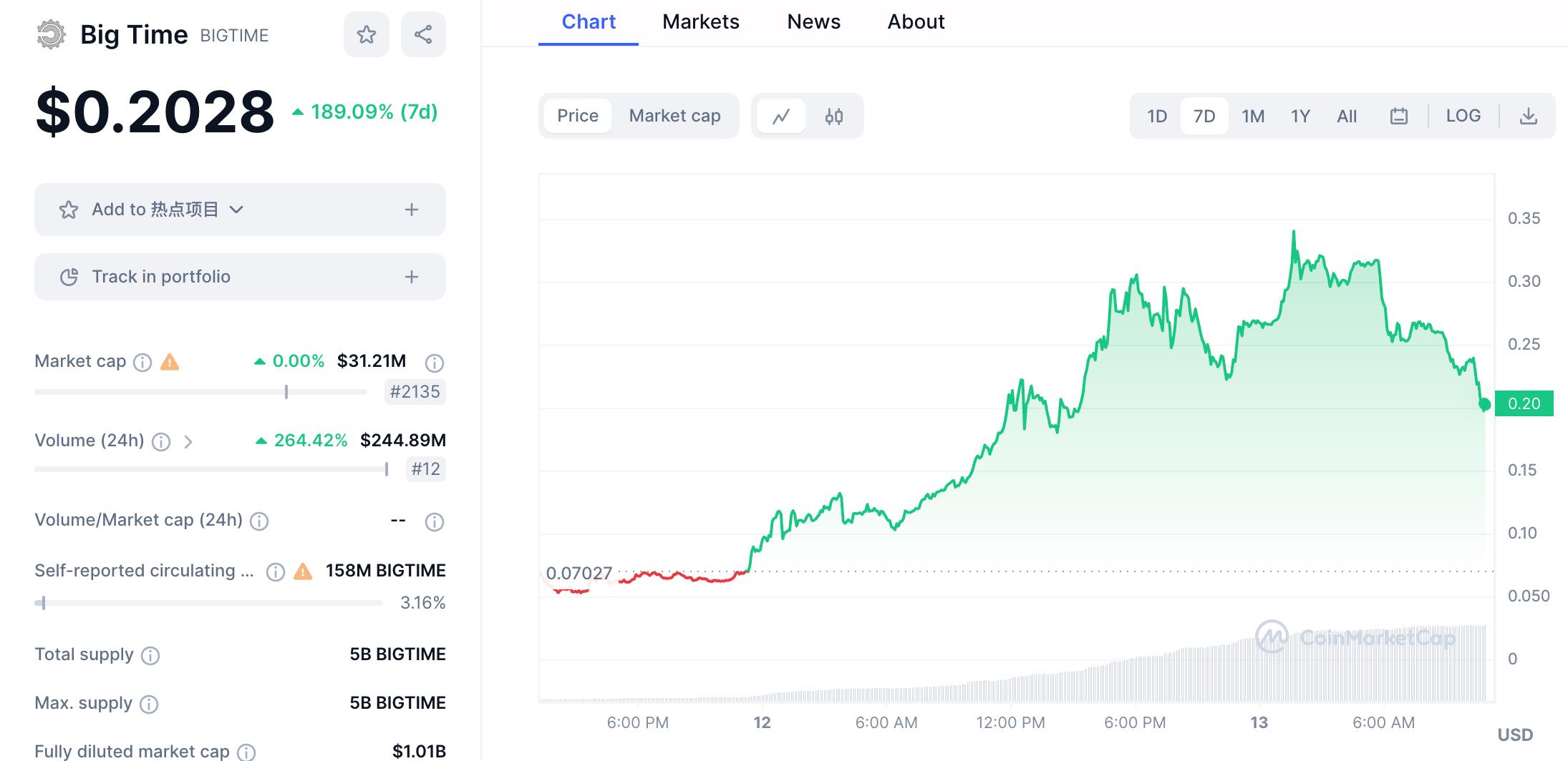 那么不打金直接买 BIGTIME 代币,情况会不会好一些?