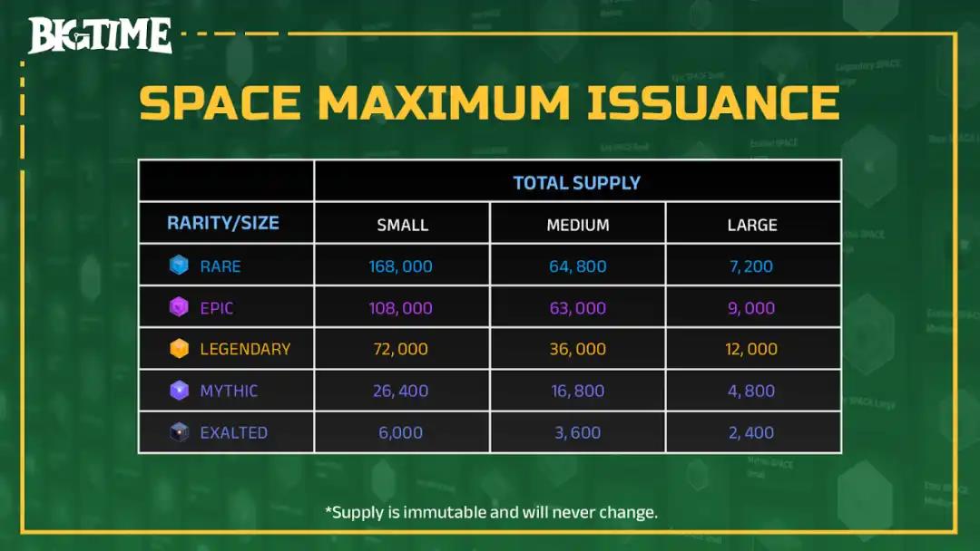 - Space NFT,类似一个个人空间,可以放置与打金相关的NFT和道具;