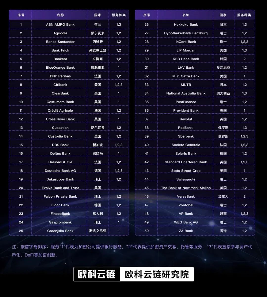 1)欧洲区的银行已成为参与和探索加密业务的主力军;