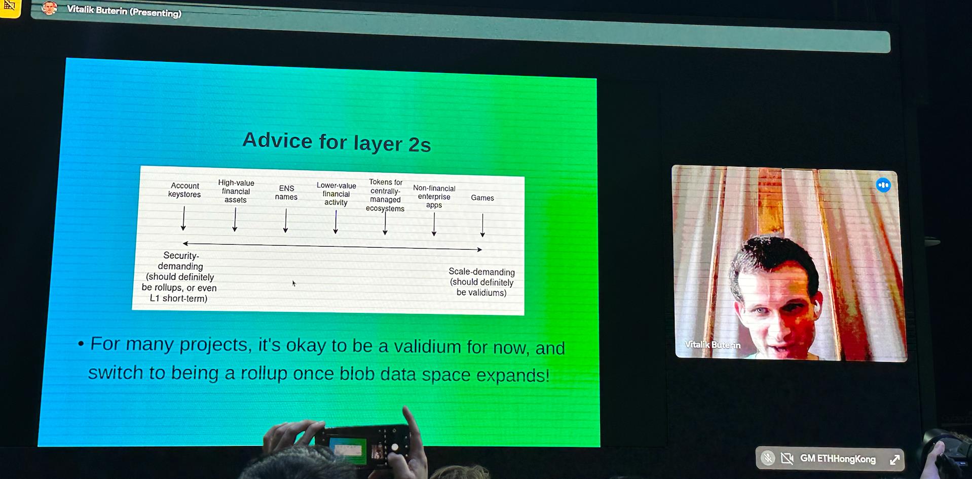 从Vitalik现场展示的图来看,对于许多项目来说,当前选择使用Validium可能是一个合理的选择,因为它提供了一种在保证交易有效性的同时,实现链下数据可用性的解决方案。