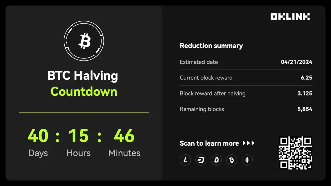 而在约40天之后,BTC减半会让新产生的供应量减半。按照BTC的设定:每产生210,000个区块后奖励将减半一次,直至2140年出块奖励为0,所有BTC发行完毕,最终发行总量恒定为2100万枚。