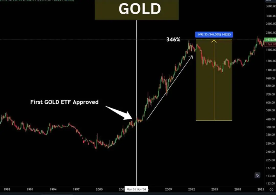 在ETF的表现上,自2004年第一支黄金现货ETF获批以来,黄金价格持续上升,不到10年时间涨幅达到了346%。然而,黄金花费了相当长的时间才被广泛认可。相比之下,BTC自诞生到2024年现货ETF通过仅用了15年时间。尽管市场持续升温,但我们需要考虑的是黄金在金融领域有着重要的历史地位。1717年,英国首次采用金本位制度,将黄金纳入货币体系的重要组成部分。