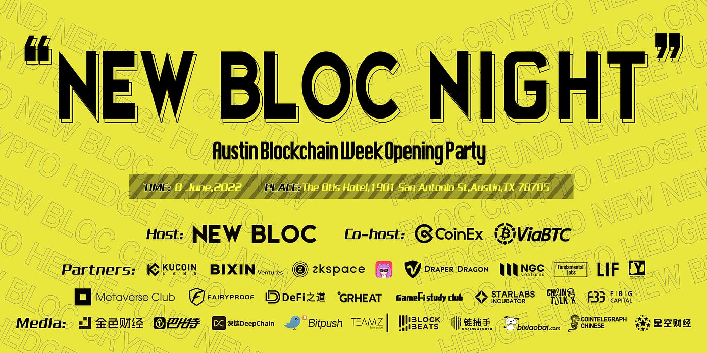 我们热烈欢迎对加密行业有热情和洞察力的小伙伴,加入NEW BLOC NIGHT 2022,共享行业盛宴!